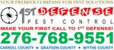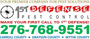 Having the ability to treat and solve any pest issue from general pest control, termite eradication, bed bug control and wildlife removal we eliminate the need to call multiple companies for multiple issues. We always set appointments that are convenient for your schedule and arrive on time, clean, and eager to solve your pest control needs. Our products are proven to be effective and our methods and IPM (Integrated Pest Management) is safe for children and pets. The goal of 1st Defense Pest Control, Inc. is to break the traditional mold of exterminating and offer you a service that is pleasurable and diverse by using advanced skills and practices. So, no matter where you live, from Wytheville, VA to Hillsville, VA if you have a pest issue MAKE YOUR FIRST CALL TO 1ST DEFENSE!